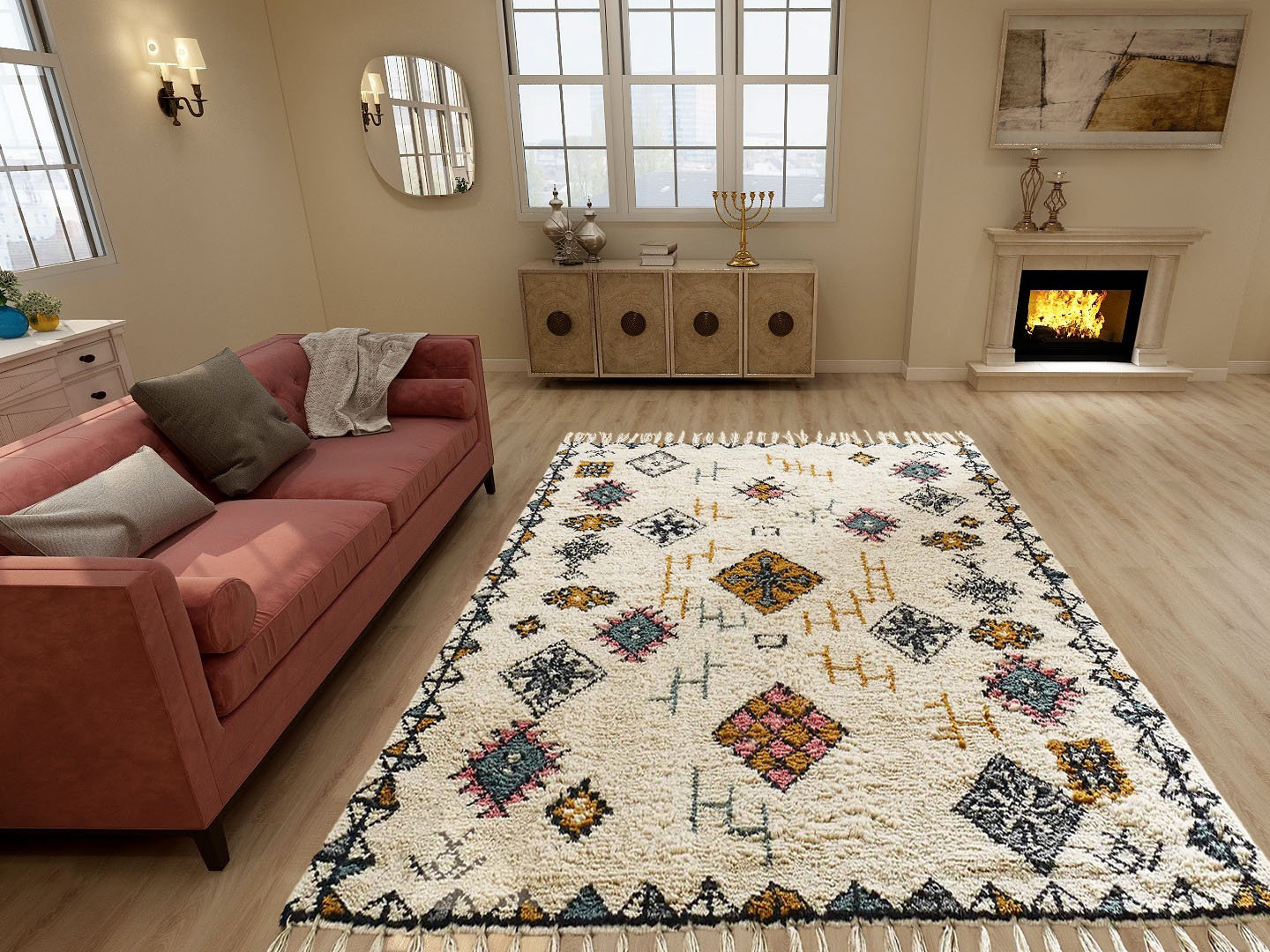 As a custom rug, this piece is truly one-of-a-kind and will add a unique touch to your home decor. Whether you’re looking for a colorful rug to brighten up your living room, a cozy carpet to add warmth to your bedroom, or a statement piece to showcase your love of Moroccan design, this beautiful rug is sure to impress. With its durable construction and timeless style, this multicolored Moroccan rug is a true investment piece that you’ll enjoy for years to come. So why wait? Add this beautiful handwoven Berber carpet to your cart today and enjoy the beauty of Moroccan craftsmanship in your home!